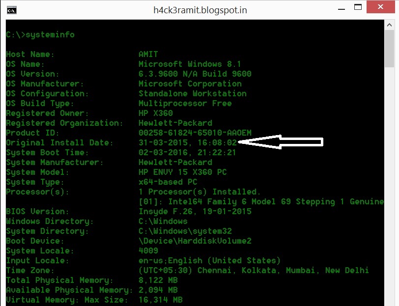 now type the command systeminfo